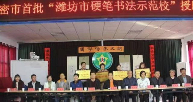潍坊市市硬笔书法家协会文艺志愿服务进百校活动,自2013年起至今已举办了7年。目前已有潍城区、奎文区、坊子区、高新区、青州、寿光、昌邑、诸城、安丘、昌乐、临朐、寒亭区,安丘市,高密市,高新区,共13个县市(区)的52所中小学校成为硬笔书法教育示范学校。
