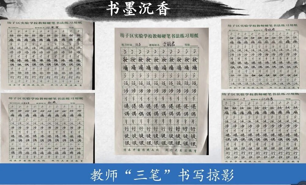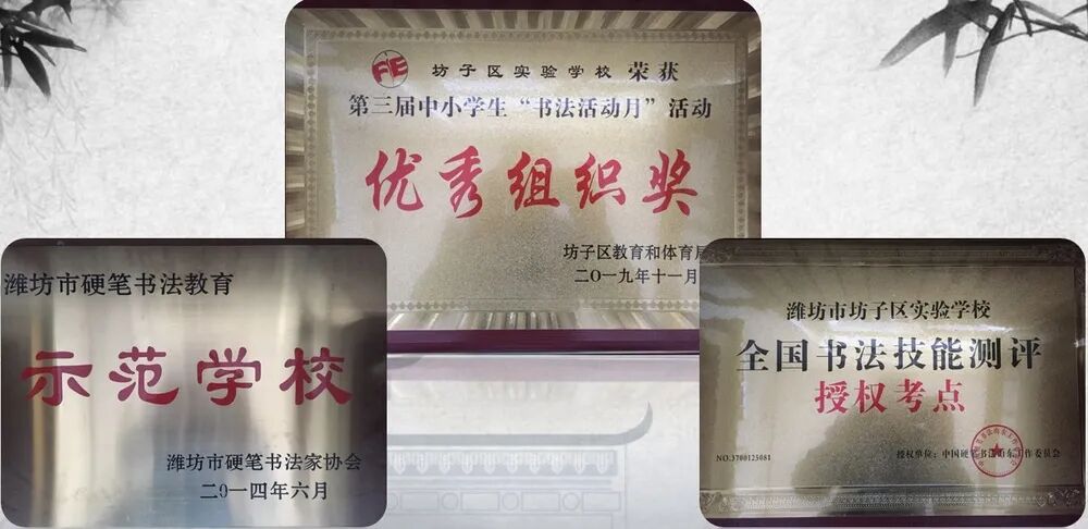 坊子区实验学校紧抓落实书法教育,提升学生综合素质,认真贯彻落实习总书记“践行大书法,传承中国传统文化”精神,成立书法社团“尚墨轩”,先后吸收发展会员70余人,其中中国硬笔书法协会少儿会员2人,中国硬笔书法协会山东工委少儿会员7人,潍坊市硬笔书法家协会少儿会员60余人,潍坊市硬笔书法协会教师会员22人,强大的书法队伍为学校的学校硬笔书法的发展奠定了基础。